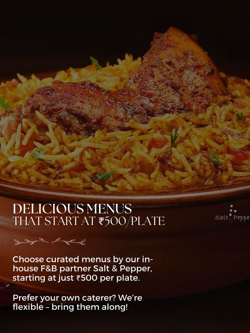 I offer two stunning rooftop spaces in the heart of Bangalore: the grand 13,000 sq. ft. Sky Terrace for up to 600 guests and the intimate 4,000 sq. ft. Terrace Garden for up to 250. See how these versatile, open-to-sky venues transform from sunlit elegance to starlit magic.