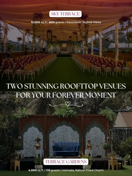 - Sky Terrace: Big, bold, and open to the city skyline. If you’re dreaming of a huge wedding or a wild sangeet, this is it. Seats up to 600, and the sunset views? Next level.