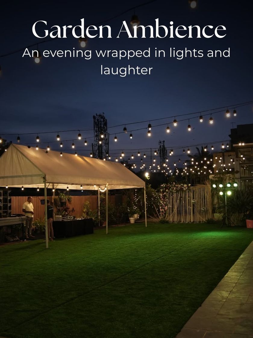 Watch our venues come alive as the sun sets over Bangalore. I ensure the ambiance is perfect for your celebration, transitioning from bright and airy daytime elegance to a magical, starlit wonderland for your evening festivities.