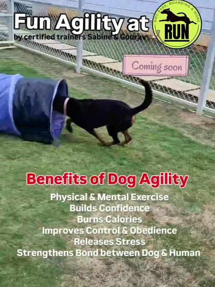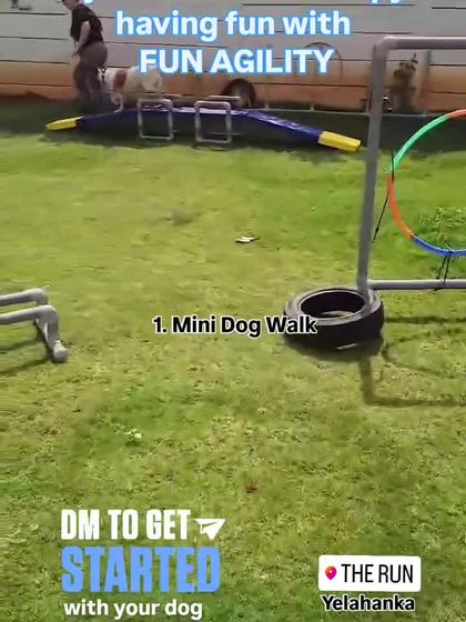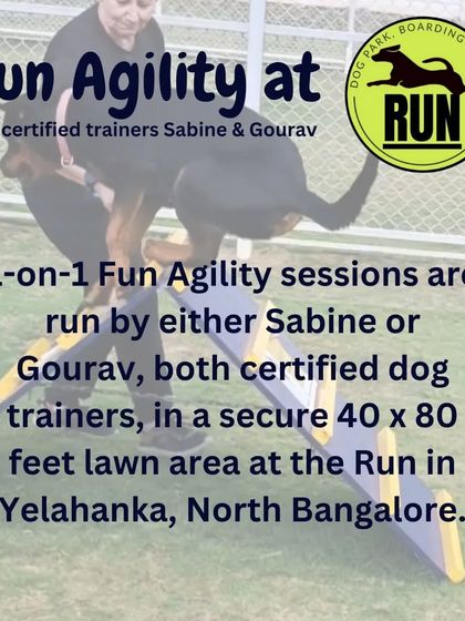 Take a tour of our training ground at 'The Run' in Yelahanka. It's a large, fully fenced lawn where your dog can be off-leash safely, with a wide variety of professional-grade obstacles that we adjust for every dog's skill level.