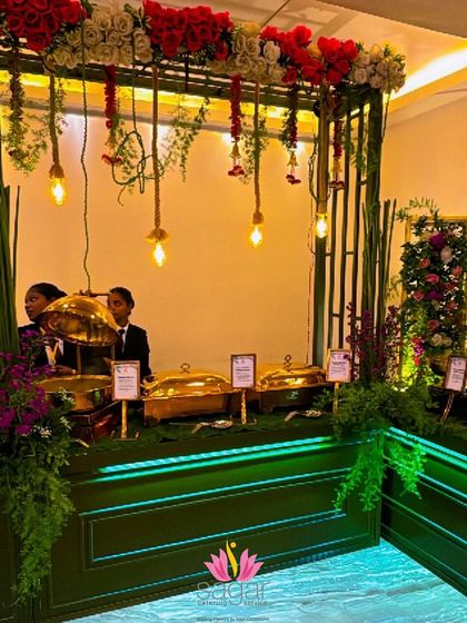 I believe the food counter is the centerpiece of an event. We design elaborate, themed buffet displays with custom lighting, premium serveware, and floral arrangements, creating a stunning visual focus for weddings, corporate events, and parties.