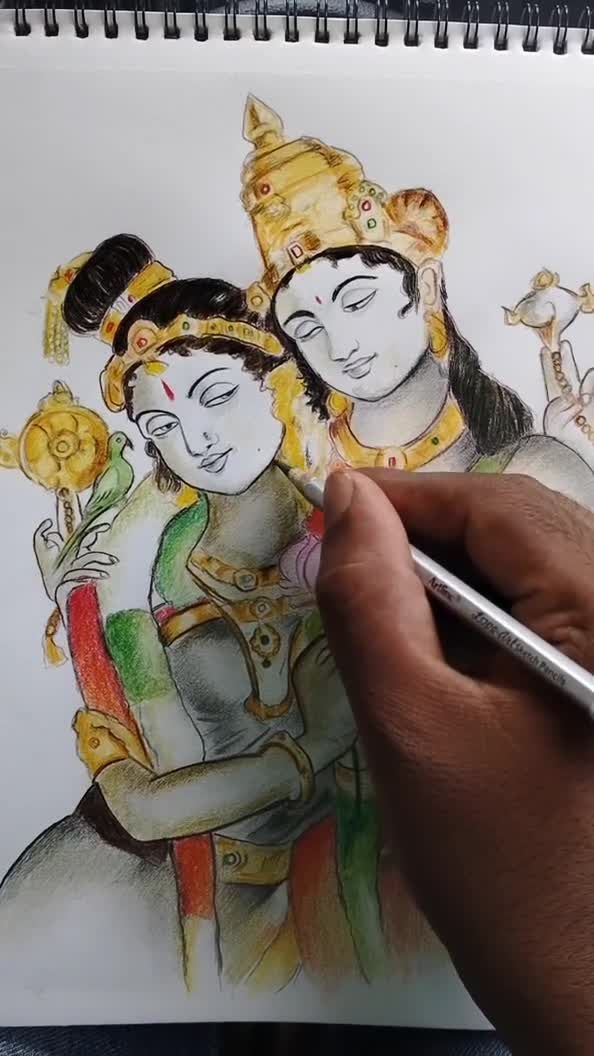 This is where I explore divine themes, drawing inspiration from our rich mythology. I create detailed colored pencil and mixed media artworks of gods and goddesses, focusing on capturing their serene and powerful presence.