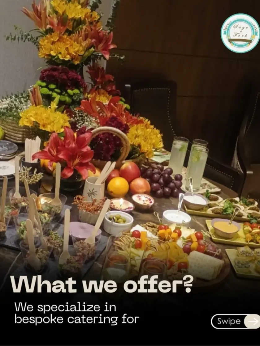 This is the first impression, a curated look into the best we have to offer. This collection showcases the variety, elegance, and deliciousness of our vegetarian catering, giving you a taste of what makes a Sage n Fork celebration so special.