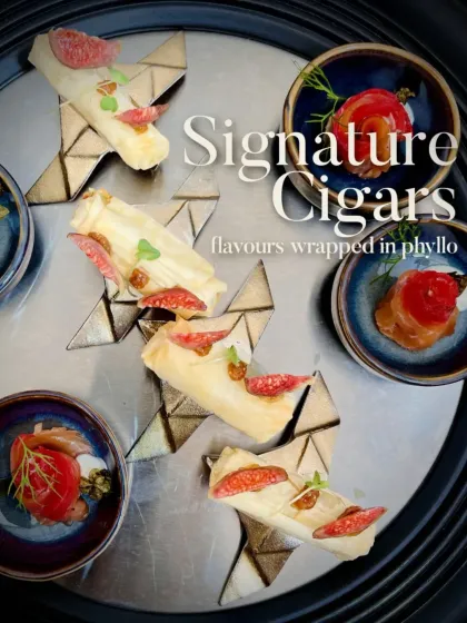Perfect for mingling, my canapés and small bites are designed to be conversation starters. This collection features a wide array of creations, from elegant phyllo cigars and delicate tarts to modern interpretations of dim sum and innovative bites on ragi crisps.