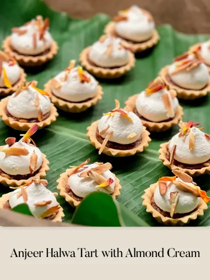 I transform classic desserts and Indian mithai into bite-sized works of art. Discover unique creations like Anjeer Halwa Tarts, Pink Peppercorn Coconut Barfi, and gold-dusted Pumpkin Fudge Tartlets, all handcrafted for a memorable sweet experience.