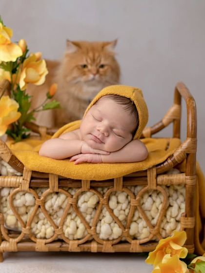 I specialize in capturing serene and peaceful moments of newborns in cozy, natural settings. My style focuses on earthy tones and soft textures, using carefully selected props like rustic wooden floors, woven baskets, and fluffy blankets.