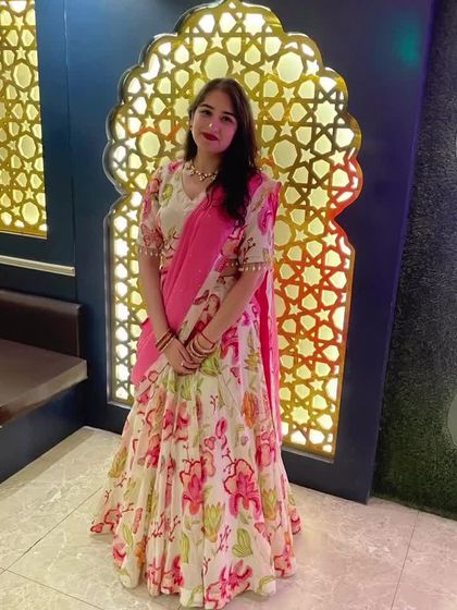 I believe every celebration deserves a beautiful lehenga. Here you will find custom designs perfect for Sangeet, Mehndi, or any festive party, featuring everything from bright floral prints and pastel threadwork to rich Banarasi and sequin-heavy styles.