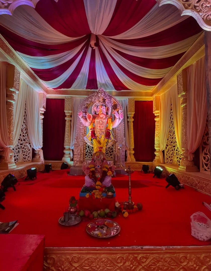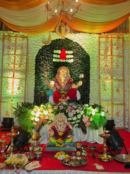 I provide complete decoration services for Ganesh Chaturthi, from grand public pandals to elegant home setups. My work includes traditional mandaps with rich fabrics, creative themes like the Chandrayaan-inspired design, and eco-friendly options using paper murtis and sustainable materials.
