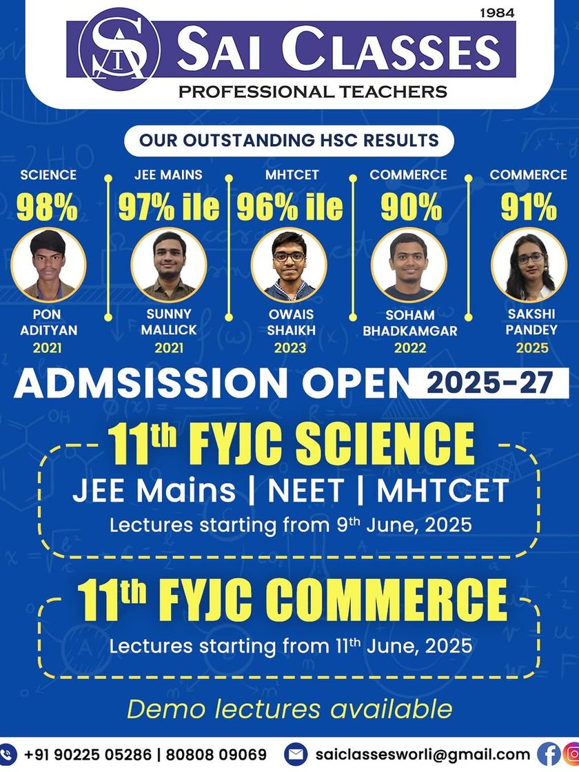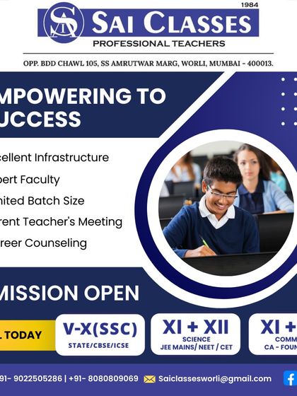This is the first look into what makes Sai Classes special. I've selected these visuals to show you our proven results, our unique teaching philosophy, and the supportive community that helps our students succeed in competitive exams like JEE, NEET, and MHT-CET.