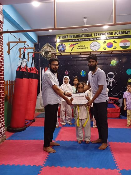 We follow a structured martial arts belt promotion system to mark each student's growth and dedication. These ceremonies are special occasions where we celebrate their achievements by awarding new belts and official certificates in front of their peers and families.