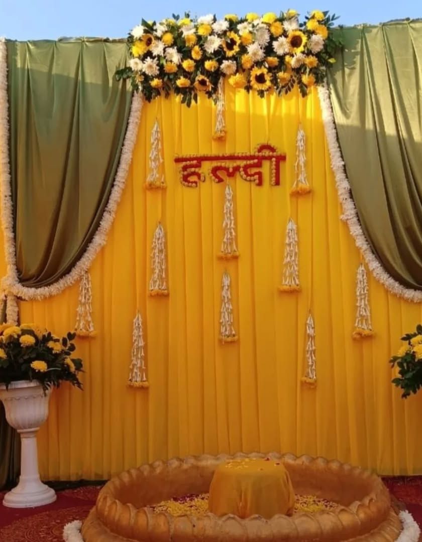 I create bright, traditional decor for Haldi and Mehndi functions using fresh marigolds, colorful drapes, and unique props like Rajasthani umbrellas and matkas. I can set up indoors for a cozy feel or outdoors with larger backdrops and artificial grass.