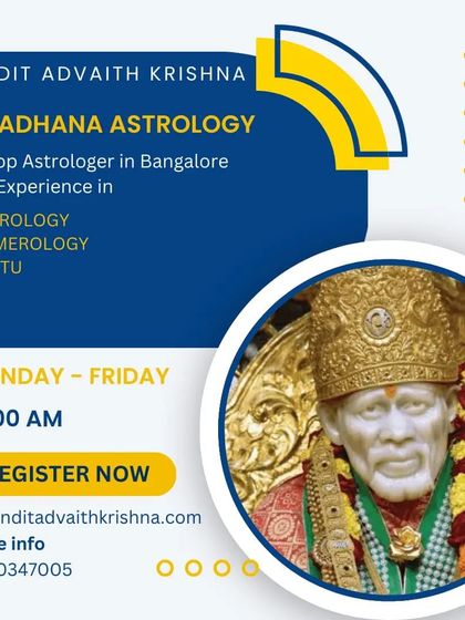 Om Sai Ram. We are Sai Sadhana Astrology Centre, led by Pandit Advaith Krishna. For 25 years, our life’s been a sadhana, not just reading stars but helping people see the prabhav (impact) of planets. Blessed by our gurus and inspired by Sai Baba, we try to guide folks through tough times, whether it’s Shani’s effects or a dosha causing trouble. Awards are nice, but seeing someone finally find shanti (peace) – that’s why we do this.