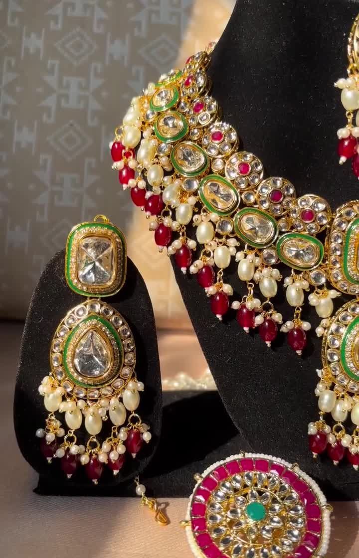 Experience royalty with our Kundan and Meenakari jewellery, known for its intricate glasswork and vibrant enamel details. This collection includes everything from grand bridal sets to elegant chokers, reflecting the heritage of Rajwadi and Mughal artistry.