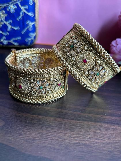Adorn your wrists with our beautiful collection of imitation bangles and bracelets. Here you will find everything from broad, statement kadas perfect for brides to delicate pearl bangles for a touch of elegance.