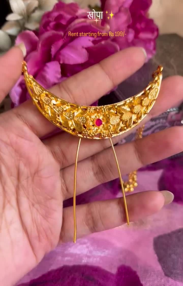 Complete your traditional Maharashtrian look with our beautiful hair accessories. This collection features different styles of 'khopa' pins and brooches to adorn your hair bun for weddings and festive occasions.