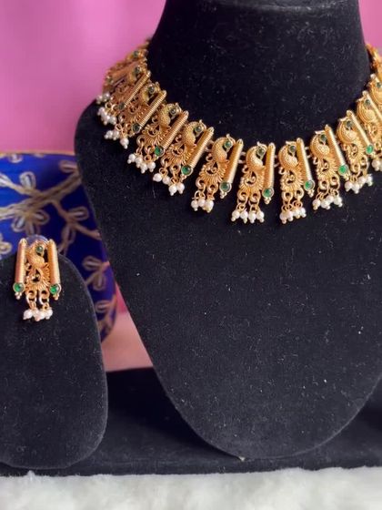 I handpick these divine temple jewellery sets, inspired by the intricate carvings and grandeur of South Indian temples. These pieces, featuring motifs like Goddess Lakshmi and peacocks, are perfect for creating a majestic bridal or festive look.