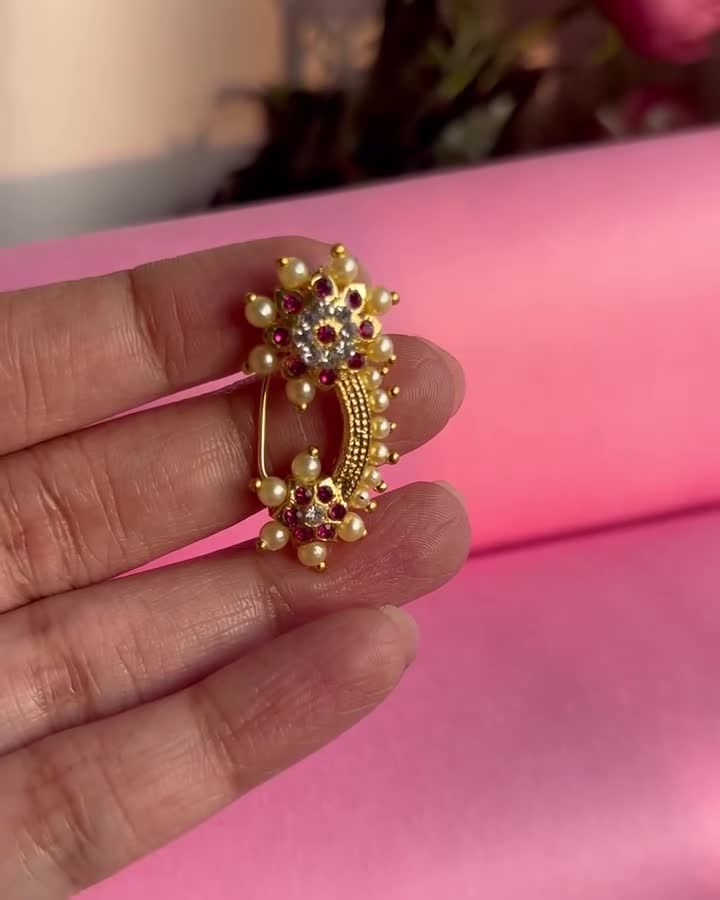 A Maharashtrian look is incomplete without a 'nath'. I have curated a wide variety of traditional nose rings, from classic pearl and stone designs to more modern American diamond styles, so you can find the perfect one for your face.