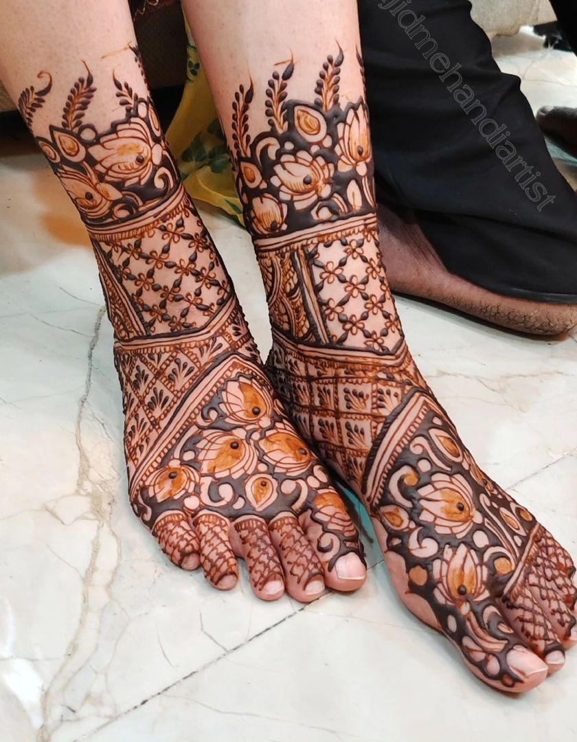 I create beautiful mehandi for the feet and legs that complements your hand designs. My work ranges from simple, elegant patterns on the feet to full-coverage designs that extend up the legs for a complete bridal look.