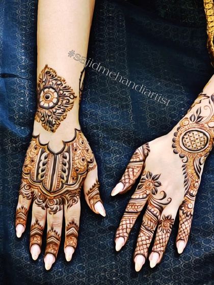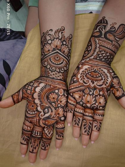 For wedding guests and family members who love rich, detailed patterns. I design full-coverage mehandi using classic Indian motifs like peacocks, paisleys, florals, and checks to create a stunning and traditional look.