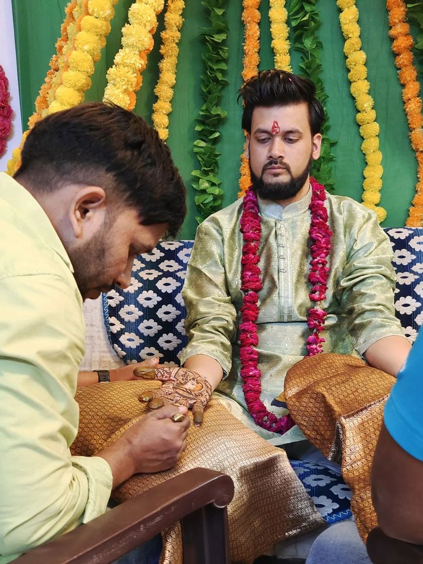 Mehandi is an important part of the wedding celebration for grooms too. I offer everything from simple, symbolic patterns to elaborate designs that match the bride's mehandi or tell the couple's story.