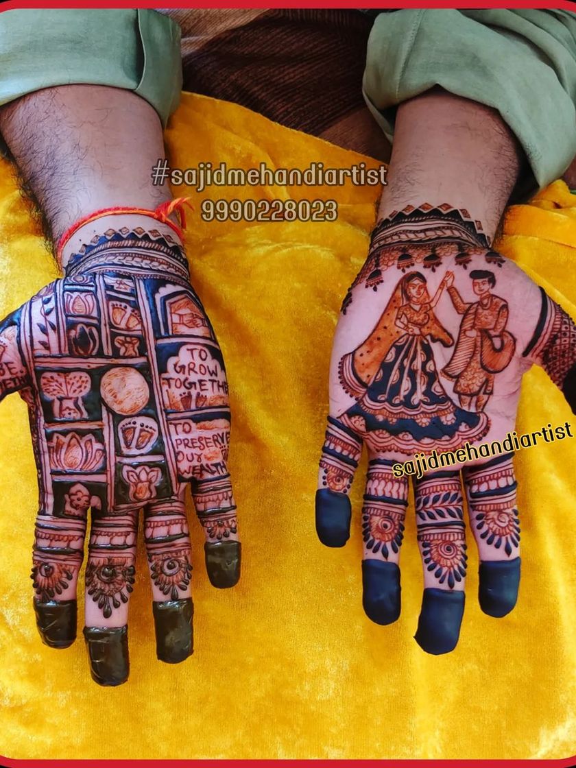 This is my specialty for clients who want their mehandi to be truly one of a kind. I can create detailed portraits of you and your loved ones, depict religious figures, or even tell a personal story through a series of unique motifs on your hands.