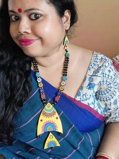 I create intricately hand-painted terracotta jewelry, drawing inspiration from traditional Indian art forms like Jamini Roy and Pichwai. I offer fine quality, eco-friendly pieces and welcome retail, bulk, and wholesale orders worldwide.