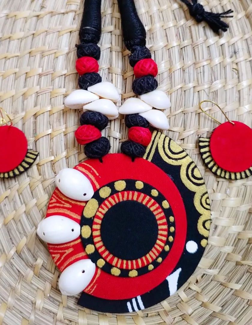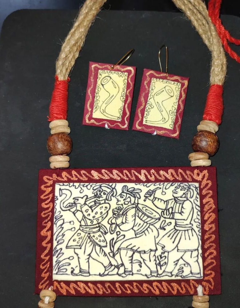 Each piece in this collection is a canvas for traditional Indian art forms that inspire me. I meticulously hand-paint motifs from Warli, Pichwai, and Jamini Roy art, as well as spiritual icons like 'Maa' Durga, making every necklace a unique piece of wearable heritage.