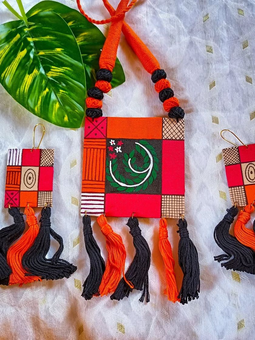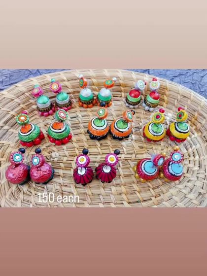 While fabric is my primary medium, I also love the earthy feel of terracotta. This collection features hand-painted baked clay jewelry, showcasing intricate designs like mandalas, florals, and birds, all finished with the same attention to color and detail.