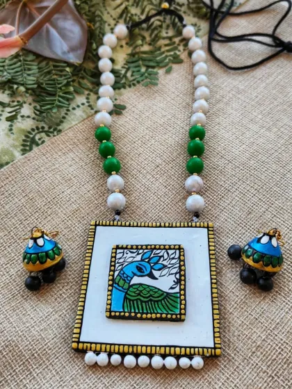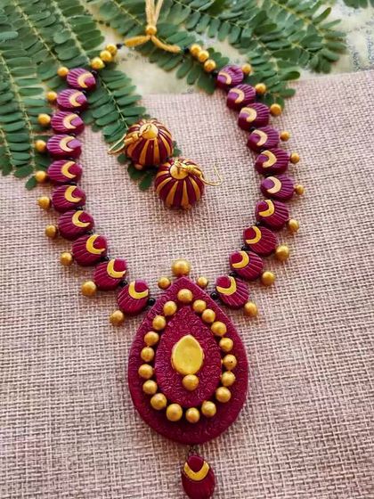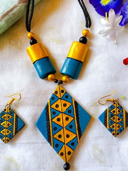 Here is a collection of more of my unique, handcrafted terracotta jewelry. This gallery includes a variety of styles, from colorful chokers and long necklaces to artistic pendants, showcasing the breadth of my work.