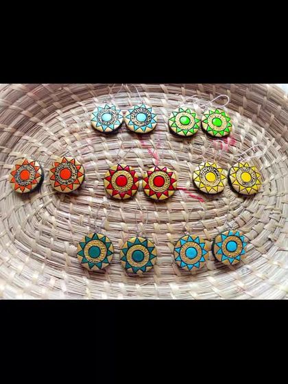 Explore my collection of handcrafted terracotta earrings, from simple studs for daily wear to vibrant, statement jhumkas and danglers. Each pair is uniquely shaped, baked, and painted by hand, offering a style for every mood and occasion.