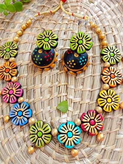 Handmade Terracotta Jewellery - I make and sell hand-painted terracotta necklace sets, earrings, rakhis. Retail, bulk, and wholesale orders welcome.