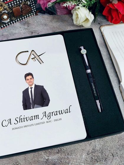 I create elegant and functional gift sets for professionals like doctors, lawyers, and CAs. These hampers feature high-quality, theme-appropriate items such as personalized diaries, pens, desk accessories, and bottles, which can be customized with names, logos, and professional symbols.