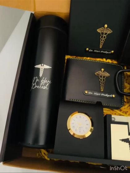 - Decor & Edibles: Includes small desk items (e.g., wooden pen stand), artificial rose, and branded chocolates.
