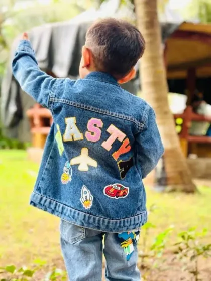 Make the kids in your life feel special with my personalized apparel. I offer super soft baby romper sets and trendy denim jackets, all customizable with names, initials, and fun patches.