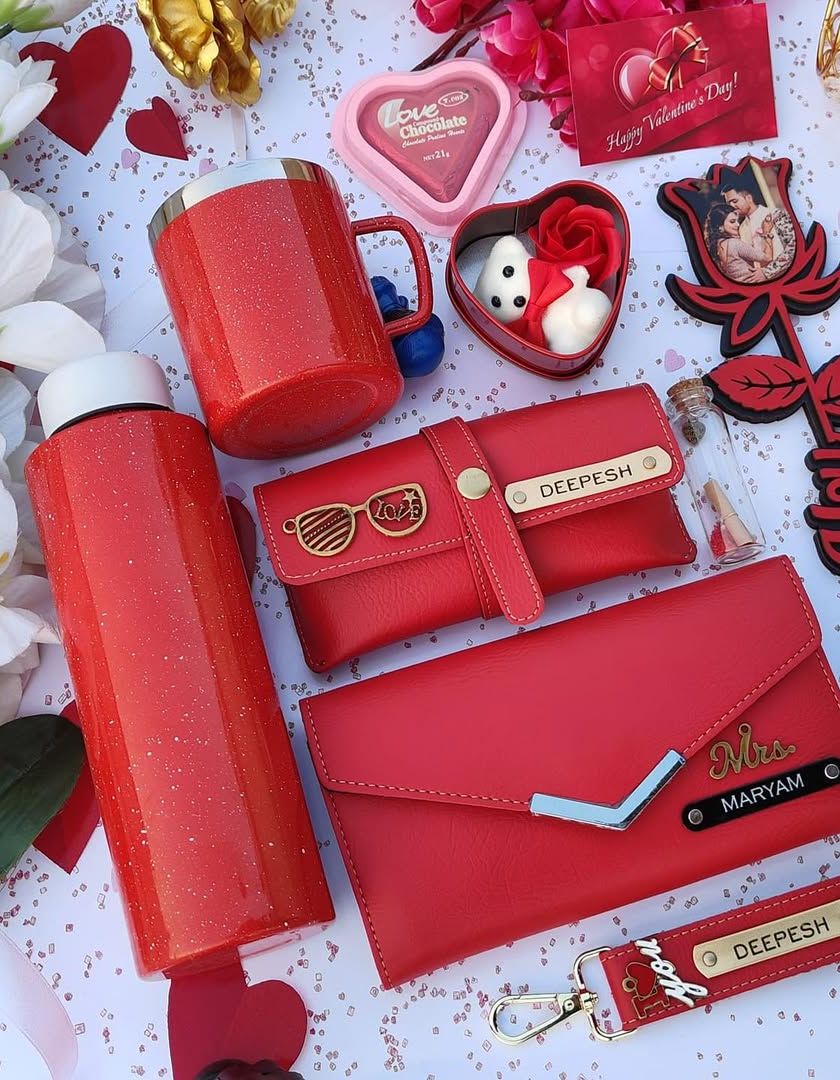 Surprise her with a thoughtful and personalized gift hamper. I create beautiful sets featuring custom clutches, sling bags, watches, accessories, and chocolates, available in various themes and colors.