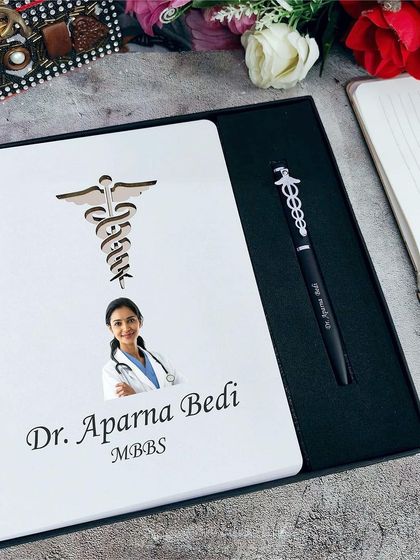 Find the perfect gift for the doctors, lawyers, and CAs in your life. I offer professional gift sets with personalized diaries, pens, mugs, and desk accessories featuring their name, photo, and professional logo.