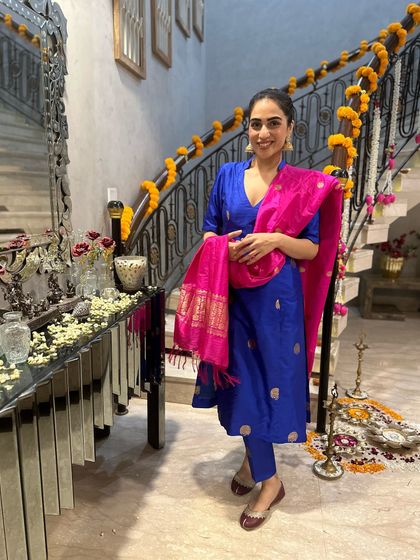I help you style your everyday outfits, plan festive looks, and build a practical wardrobe using your own clothes, Indian and high-street brands, and custom designs if you need them.