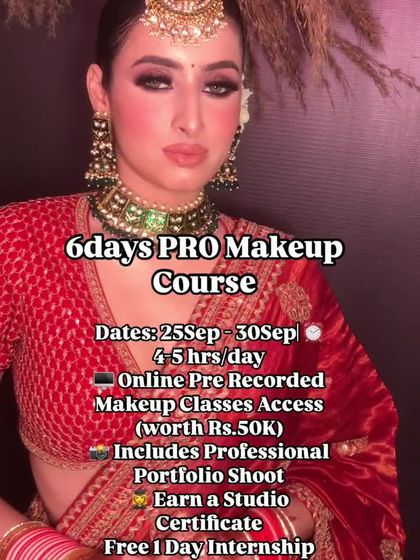 We offer a comprehensive 6-day professional makeup course covering basic to advanced techniques. The program includes hands-on training, a professional portfolio shoot, and studio certification. Students receive access to exclusive online pre-recorded classes and a free one-day internship opportunity.