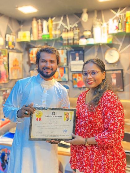 Main Salim Ansari, Mumbai ka Hair Guru. Hairstyling mere liye sirf kaam nahi, ek dum art hai. Bollywood ke shoots pe bhi gaya hoon, Nia Sharma ke saath kaam kiya, mast experience mila. Sabse zyada khushi academy chalane mein hai, Andheri mein students ko basic se advance sab sikhaata hoon. Family time bhi important, meri princess Arfha ko happy birthday! Kaam karo, seekho, bhai log ke saath chai ho jaye toh life set.