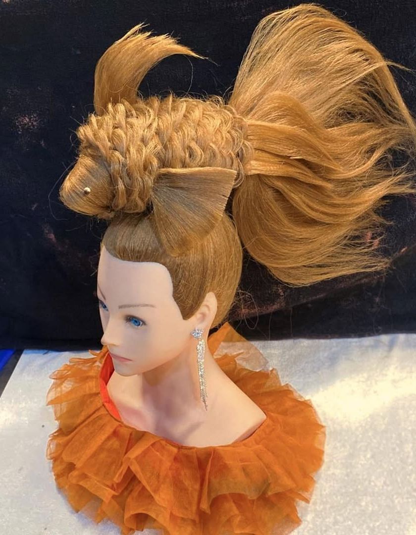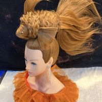 I am proud to show off the work of my students. This gallery features final hairstyles created by students during our courses, showcasing their skills in updos, braiding, curling, and creative styling on mannequin heads.