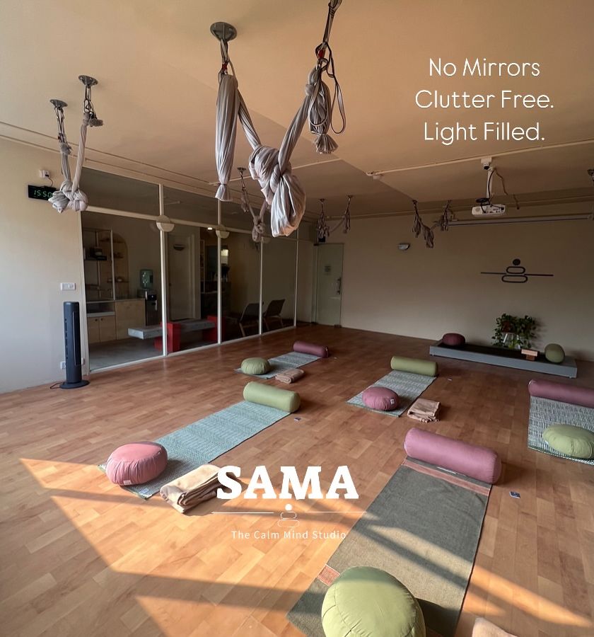 At SAMA, physical exercise is only half the journey. Every class, from Pilates to Yoga, dedicates significant time to a calm mind practice such as guided meditation, breathwork, or sound healing to help you find stillness and mental clarity.