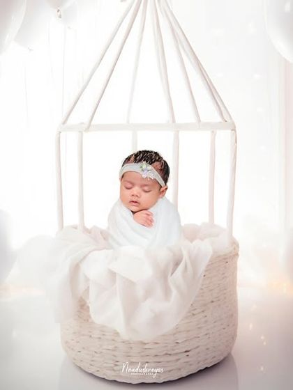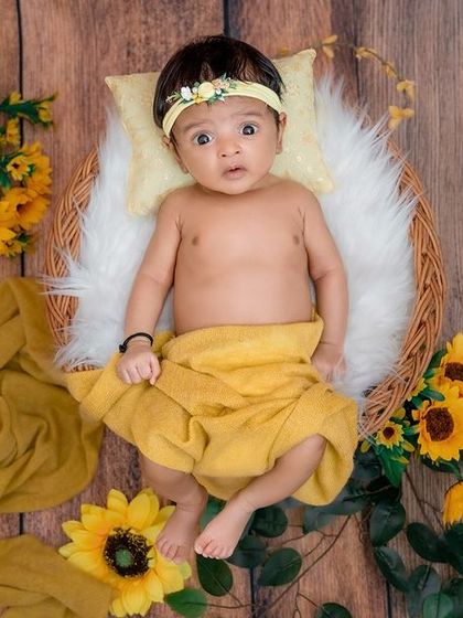 You'll find two cozy studios in Bangalore, made for little ones - plenty of soft light, safety, and some serious creative energy. With more than 100 props and 50 dreamy setups, I can go from floral walls to winter wonderlands in minutes. Think baskets, wraps, headbands, miniature beds - the works.