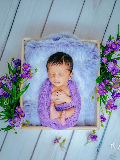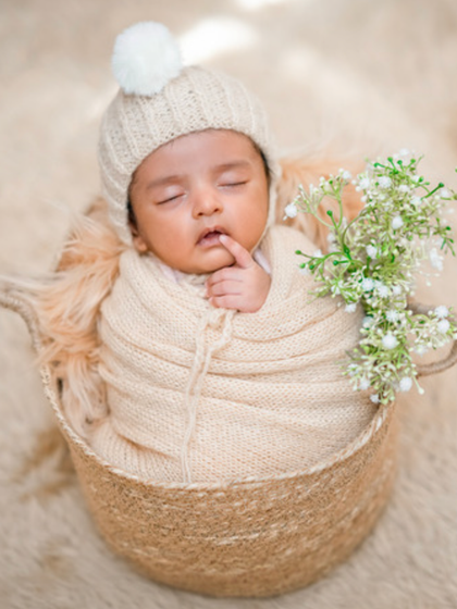 We specialize in capturing the precious first moments of your newborn through intimate portrait sessions. Our service includes both studio and home-based shoots, with a variety of props like baskets, blankets, and floral arrangements to create cozy settings.