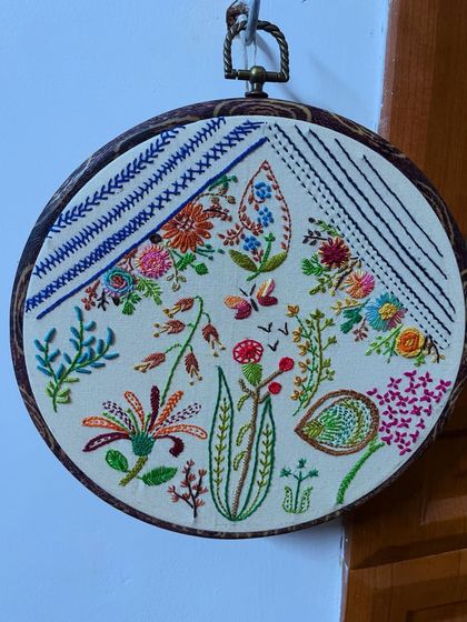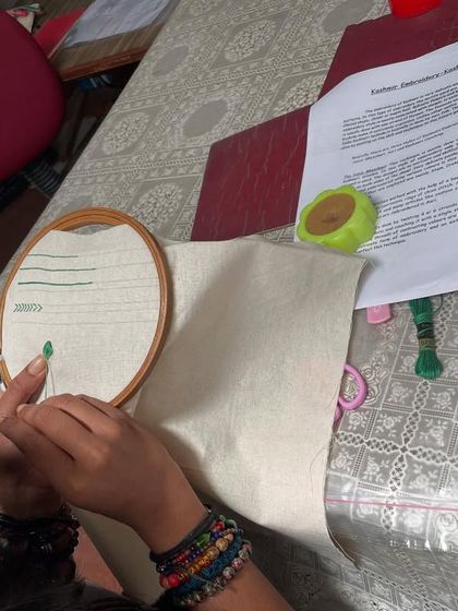 I teach hand embroidery workshops where anyone can learn Kasuti and 25+ styles, get all materials, and leave with their own stitched piece, no experience needed.
