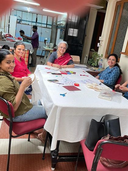 We’re Sameeksha. Embroidery isn’t just decoration for us—it’s memory, emotion, and a bit of amma’s (mom’s) wisdom stitched in. Started this place so those stories don’t get lost. Every time a student makes something new—like earrings for her little one—it’s pure magic. Needle, thread, and a lot of heart. Teaching hand embroidery keeps us connected, gives us joy. It’s addictive, honestly. Once you start, you’ll see.