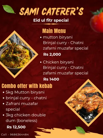 Assalam walekum, Samiulla Khan here from Sami Caterer's. Since 1999, food for us means zaayka and tradition, not just business. Hum sab karte hain - weddings, birthdays, office parties, Eid, anything. Biryani ka asli mazaa masalon se hai (real joy is in the spices), not the mild stuff. We cook big deghs on fire, proper kadak masaledaar biryani, just like old times. If you want real taste, you’ll find it with us.