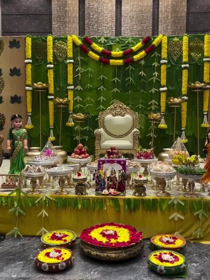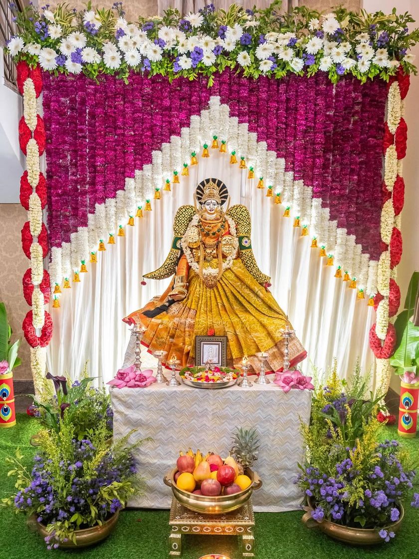 We create divine settings for your poojas and festivals with meticulous attention to detail. Our services include decorating deities like Varalakshmi and creating a serene atmosphere for your home pooja room.