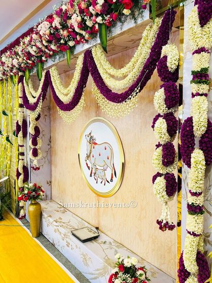 We bring your vision to life with custom-themed decorations. Popular themes include serene cow and calf motifs for housewarmings and vibrant Krishna-inspired setups for festivals.