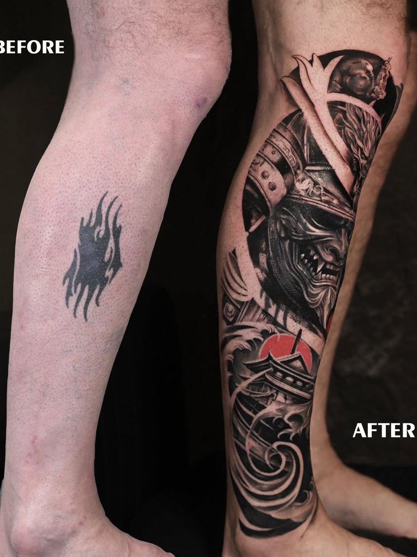 I specialize in transforming large, unwanted tattoos on forearms, legs, and shoulders into cohesive new works of art. Using styles like black and grey realism or Japanese themes, I can completely hide old ink and create a seamless, powerful new piece that you'll be proud to wear.
