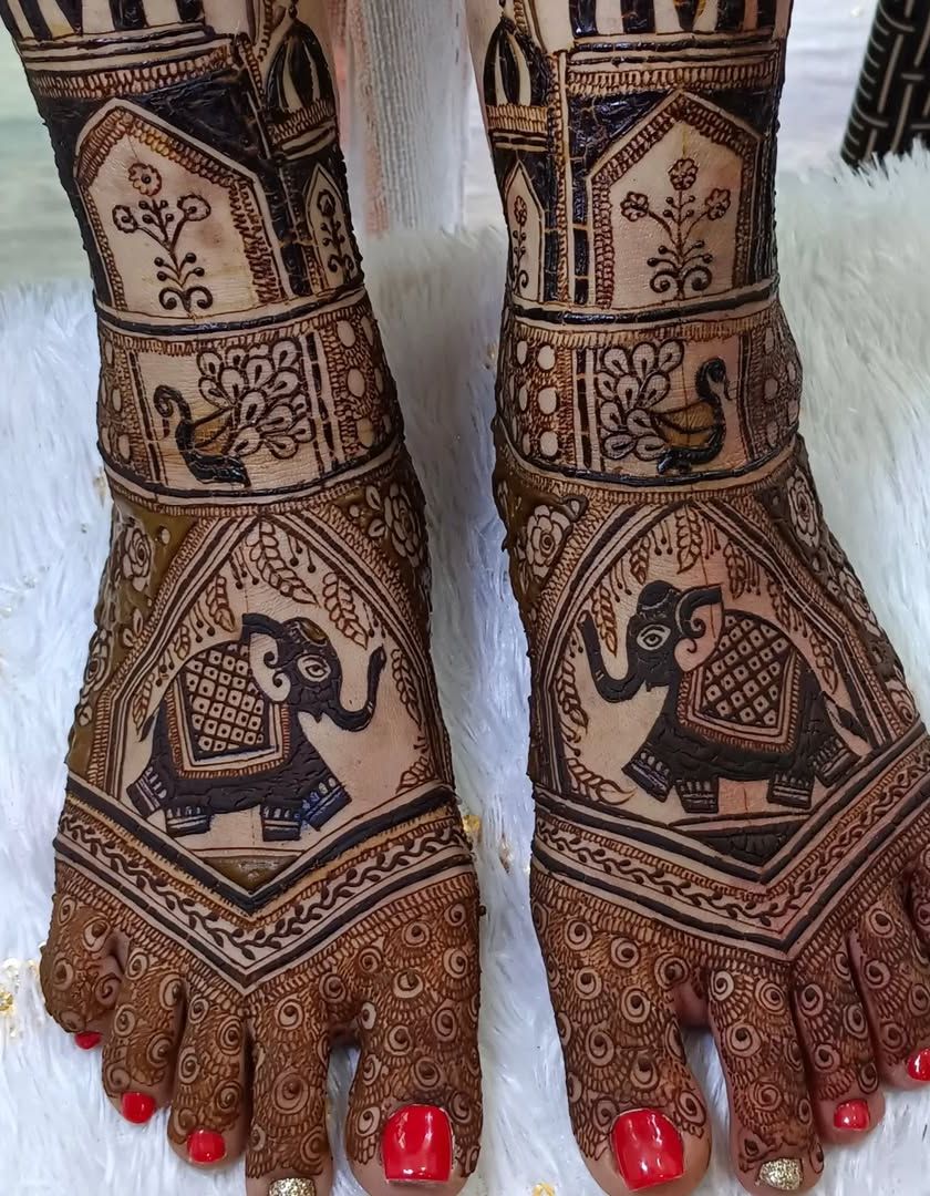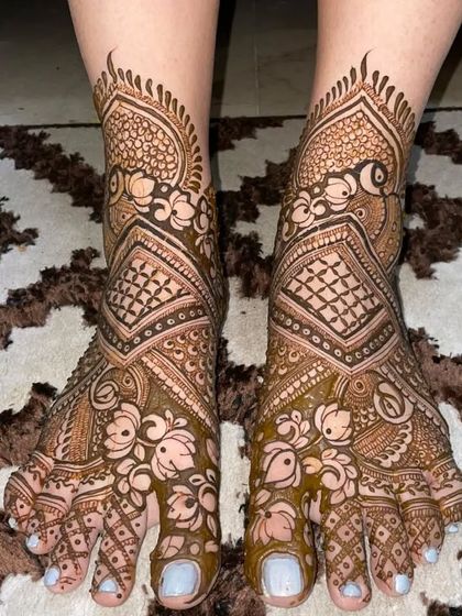 A bridal look is incomplete without mehendi on the feet. I offer a range of designs, from simple and elegant patterns that adorn the top of the feet to full-coverage designs that match the intricacy of your hands.